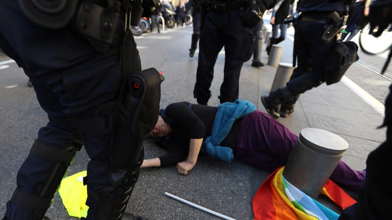 C’est « un policier isolé et dépourvu de bouclier » qui a « provoqué la chute » de la manifestante, dit-il, soulignant que l’action de dispersion était « totalement légitime ».