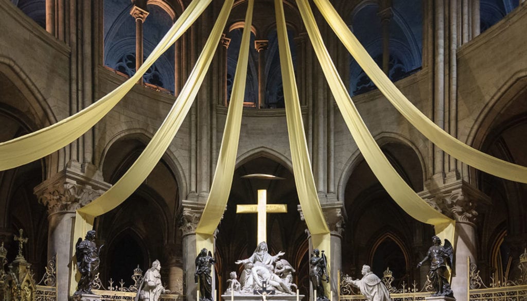 Mais aujourd’hui, cette résurrection est gravement compromise par un projet d’aménagement de l’intérieur du monument. Le diocèse de Paris veut en effet profiter du chantier de restauration pour transformer l’intérieur de Notre-Dame en un projet qui en dénature entièrement le décor et l’espace liturgique. Il estime ainsi que les destructions de l’incendie sont l’occasion de transformer l’appréhension du monument par le visiteur, alors même que celui-ci s’est limité à la toiture et à la flèche et n’a rien détruit de patrimonial à l’intérieur.