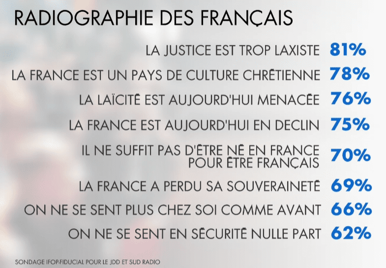 Sondage : les deux tiers des Français « ne se sentent plus chez eux comme avant » et « ne se sentent en sécurité nulle part » Société | Sondages | Ensauvagement DR 29 mars 2021 Et en détails : Partager sur Facebook Partager sur X Partager par e-mail