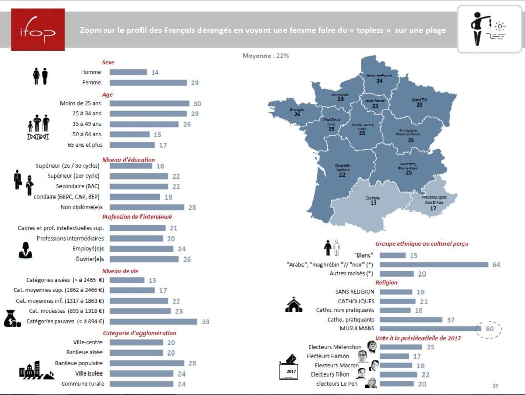 « Chez les moins de 25 ans, c’est la crainte de regards concupiscents et pour 51 % d’entre elles la peur de faire l’objet d’agressions. On peut parler d’un effet MeToo à la plage. » Le mouvement semble avoir apporté un désir de se protéger plutôt qu’une libération.