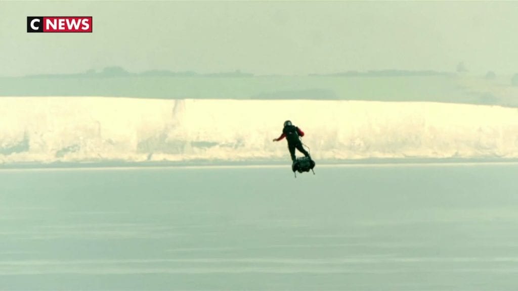 Huit minutes jusqu’à un bateau de ravitaillement, puis huit autres pour rejoindre l’Angleterre. Trente-cinq kilomètres au-dessus de la manche mais à une vitesse de 160km/h en moyenne, le champion a dû mal à profiter de la vue.